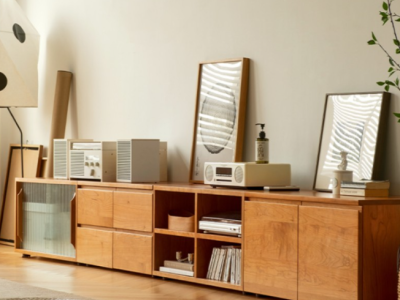 北欧实木模块电视柜日式樱桃木家具客厅书柜储物柜落地组合柜