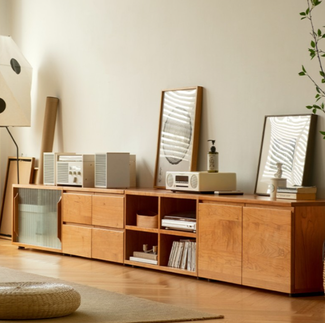 北欧实木模块电视柜日式樱桃木家具客厅书柜储物柜落地组合柜