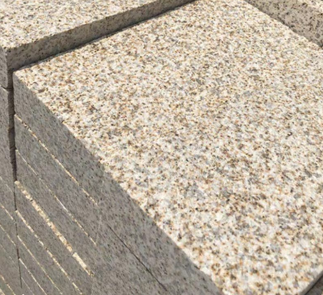供应花岗岩芝麻黑白灰火烧板荔枝面广场庭院地铺石黄金麻路沿石材