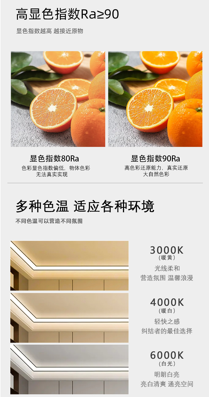 色温黑色灯槽+白色面罩(不含灯带)(K)