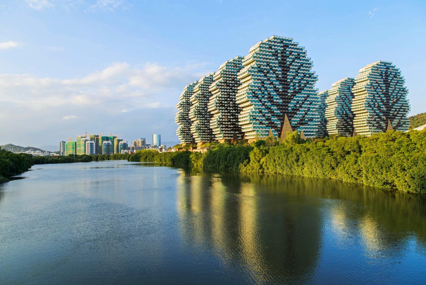 整个建筑群的外形融合了皇冠造型、梧桐树与凤凰羽造型,是集超豪华酒店、商业会展、购物广场、休闲娱乐、餐饮美食、旅