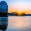 雁栖湖凯宾斯基的外形酷似一个扁扁的大球,据介绍其设计灵感来自于中国传统文化中代表了“财富”的扇贝形状,正面的圆形寓有旭日东升。