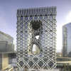 整座大楼建筑体实际是采用两个圆柱形塔楼作为中央核心筒,外部包裹着暴露的网状结构,并通过呈曲面的网状结构相互连接,相当的独特。